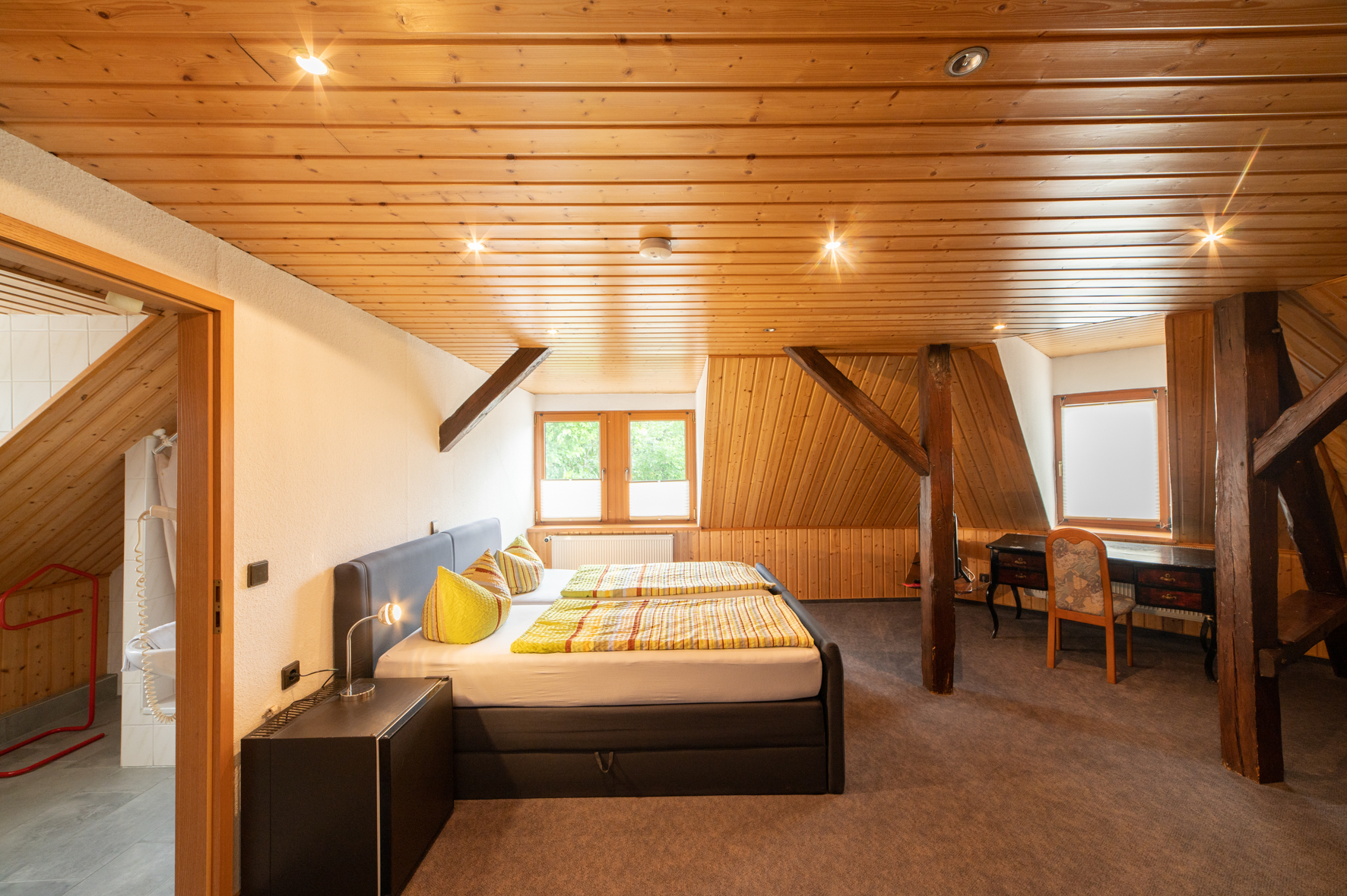Im Neubau des Hauses verfügen wir über vier Doppelzimmer, die durch Änderung der Möbel auch als Zweibettzimmer oder Einzelzimmer genutzt werden können.